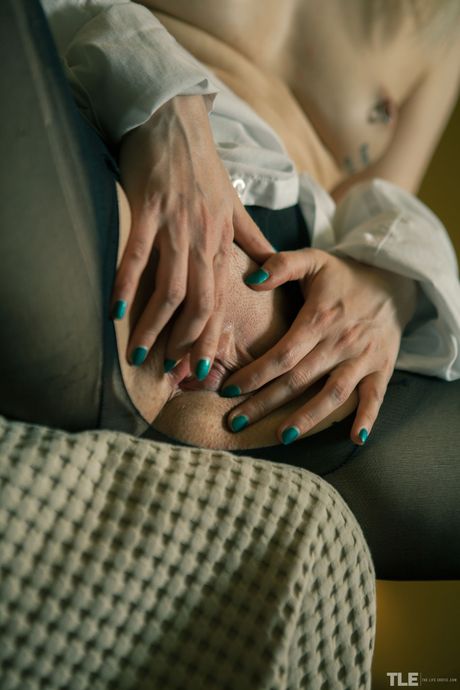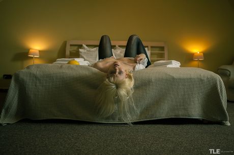 The Life Erotic: Blond tenåring Alice Crowley Rips Open Ripped Pantyhose for å bli helt naken