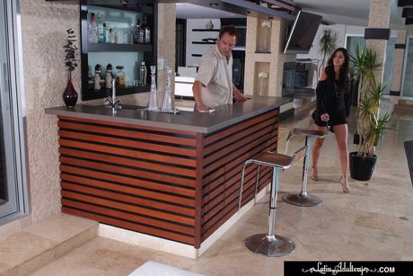 Naughty America: Busty Latina Uma Stone får den store rumpa slikket og fitta hennes knullet av en bartender