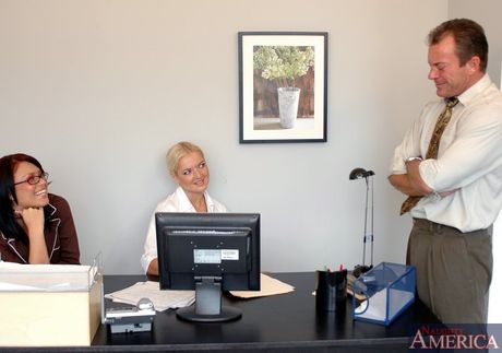Naughty America: Busty kontorsludder med store pupper får fitta sine slikket og knullet
