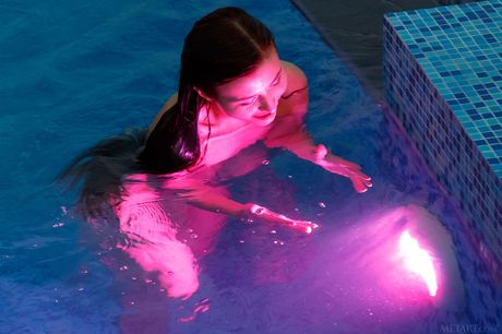 Met Art: Sjarmerende tenåring Berenice fjerner en rød kjole for å posere naken i et basseng