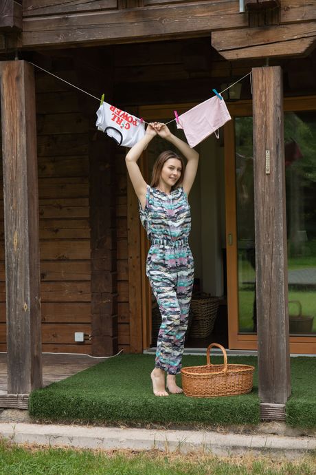 Met Art: Søt tenåring Dominika Jule fjerner klærne for å posere naken på en vaskeri