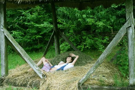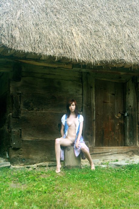 Met Art: Søt tenåring masha f viser hennes hårete kusse og små pupper i et felt