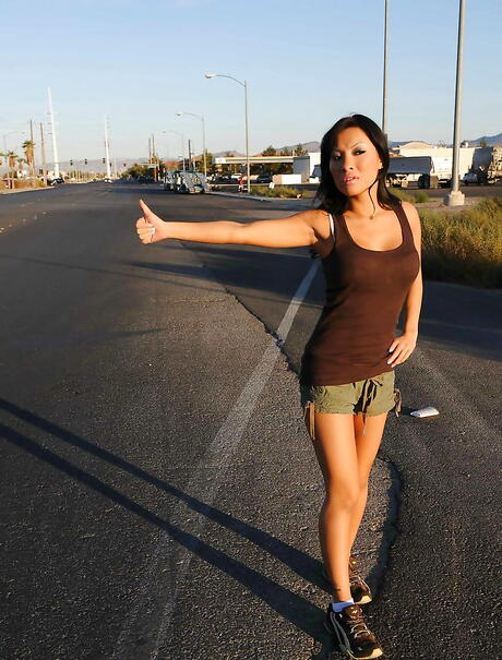 Brazzers Network: Deluxe Japanese Asa Akira i shorts fungerer med våte lepper på Big Rod