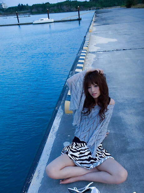 Idols 69: Deluxe Japanese Hottie Mari Misaki utsetter rumpa i sexy skjørt og onanerer på stranden