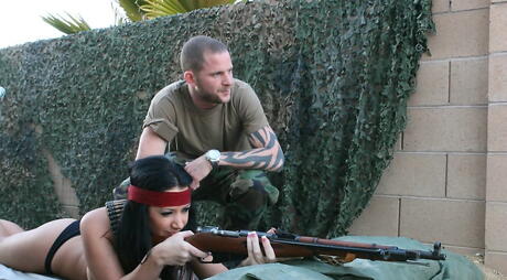Big Tits In Uniform: Utmerkede amerikanske Jayden Jaymes i uniform slo i den barberte fitta etter varm suge