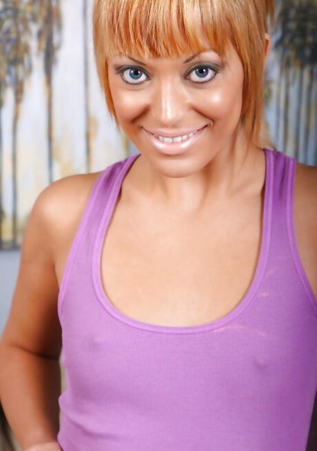 Karups Hometown Amateurs: Gracile American Blond Teen Audrianna Angel i fancy shorts som viser små pupper og skallet fitte
