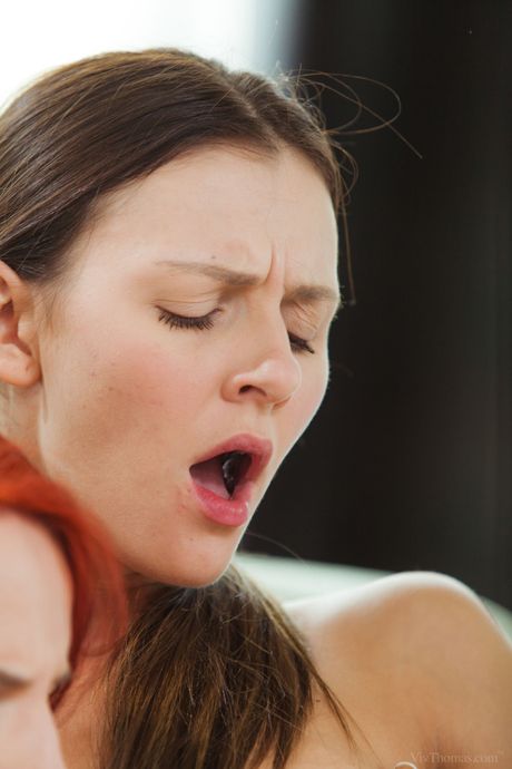 Viv Thomas: Hot lesbiske Kira Zen & Leila Smith Kiss før han slikker pussier på en sofa