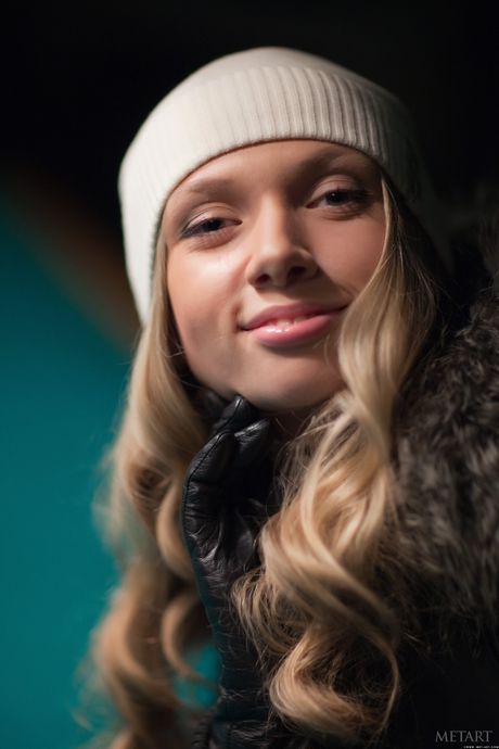 Met Art: Hot Teen Augusta Crystal viser sine store pupper og positurer i svarte strømper