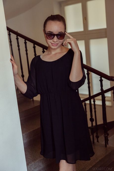 Sex Art: Hot Teen Messias strips av kjolen og trusen for å vise hennes hårete fitte