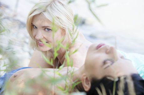 Viv Thomas: Hot Teen Zazie S & Kira Queen har lesbisk sex i hagen