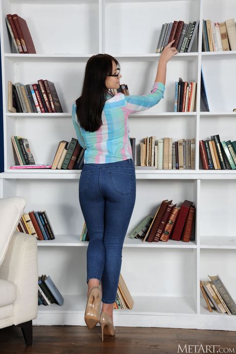 Met Art: Spennende tenåring Amelina fjerner brillene og klærne for å utgjøre naken