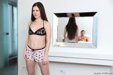 Nubiles Porn: Spennende tenåring Cassie Fire får barbert fitte knullet av stefaren hennes