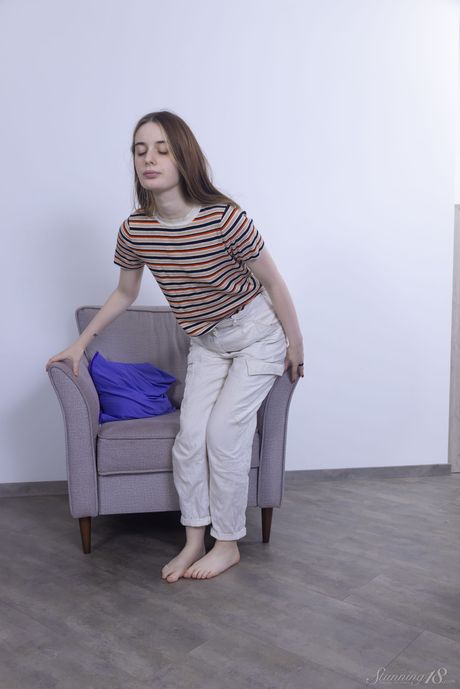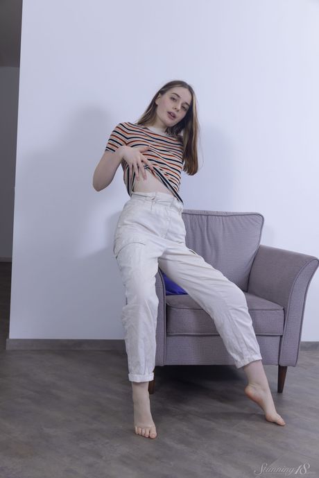 Stunning 18: Lean Teen Eshlinn Brook viser små pupper og barberte kuse i en solo