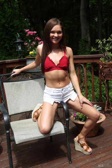 ALS Scan: Lean Teen Zoe Bloom Leker fitta hennes med en flaske før hun pisser utendørs
