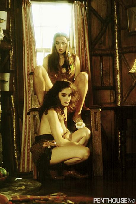 Penthouse Gold: Lesbiske babes med store pupper Leslie Glass og Sasha Vinni leketøy hverandres kuse