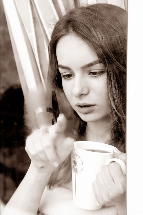 Met Art: Perfekt tenåring Debora A poserer naken på en steinete strand i solen