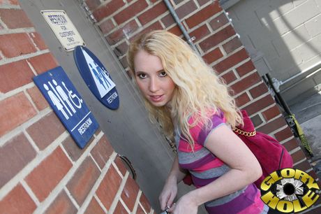Dogfart Network: Petite Blonde Nicki Blue suger og knuller en BBC gjennom et gloryhull