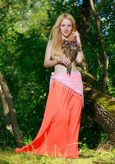 Met Art: Rangy Blond Cutie Fay Love som viser små pupper og rumpe utenfor