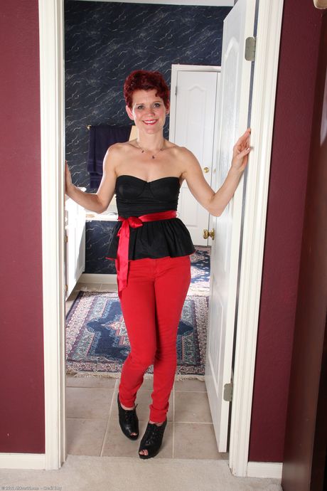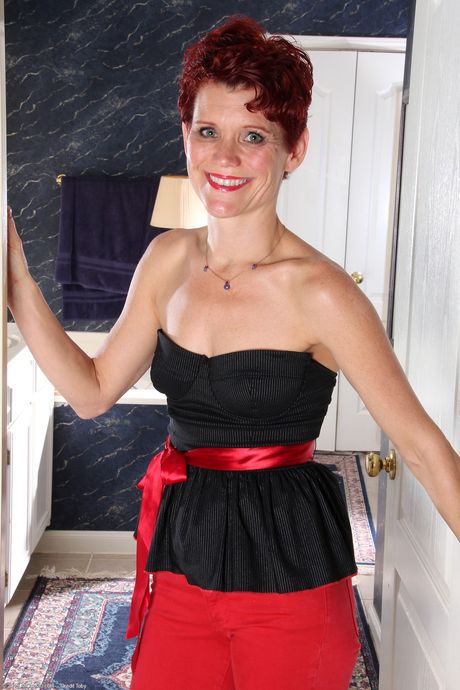 All Over 30: Rødhåret moden Suzy Stanton viser den store rumpa hennes og sprer henne twat