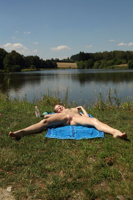 ALS Scan: Rødhåret tenåring Kiara Cole blir naken og leker med fitta i hagen