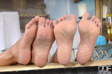 Porn World: Sasha Rose & Nikki Miller slikker hverandres føtter på badet
