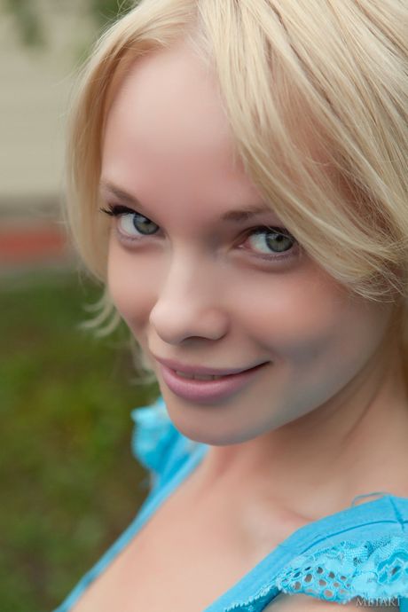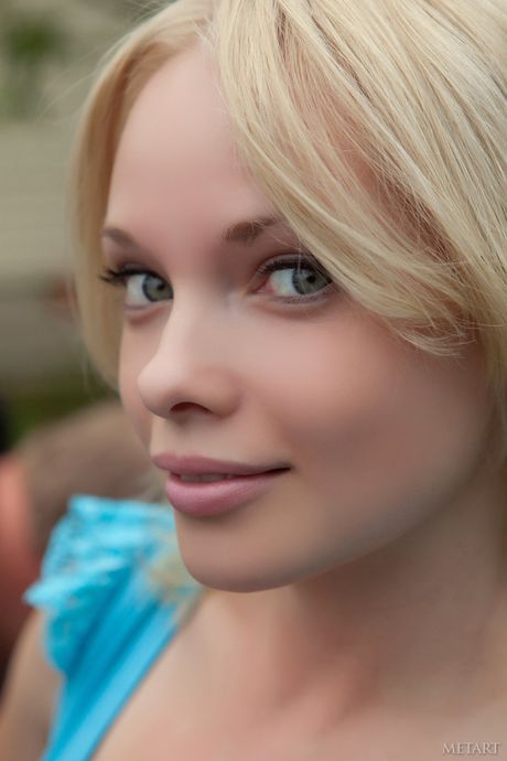 Met Art: Sexy blond Feeona a strips klærne av og poserer naken i hagen