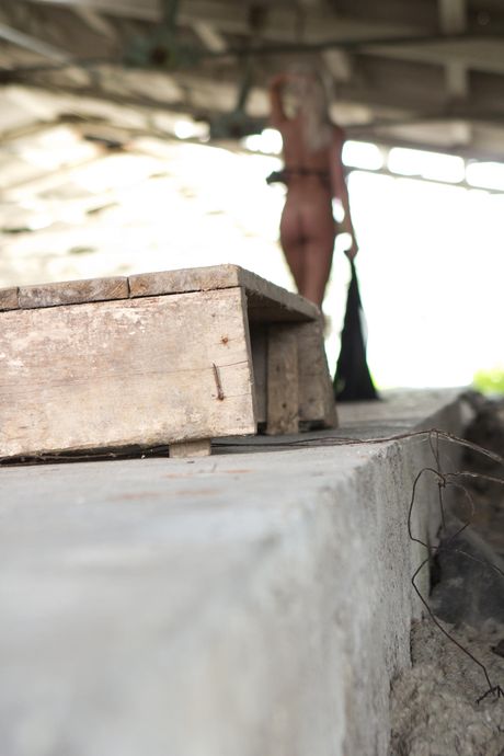 The Life Erotic: Sexy blond karina o i undertøy og solbriller som onanerer utendørs
