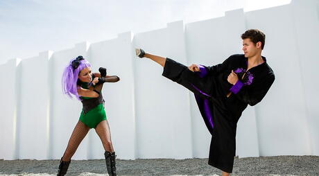 Digital Playground: Sexy kinesisk tenåring alina li jobber med våte lepper på stang og tar et cumshot i munnen