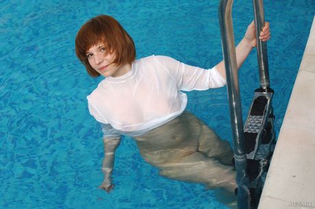 Met Art: Sexy rødhårete Maria M fremhever de store puppene og poserer naken i bassenget