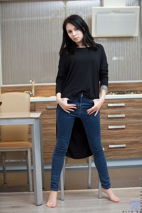 Nubiles: Sexy ung jente alla b tar av seg jeans og undertøy for å posere naken