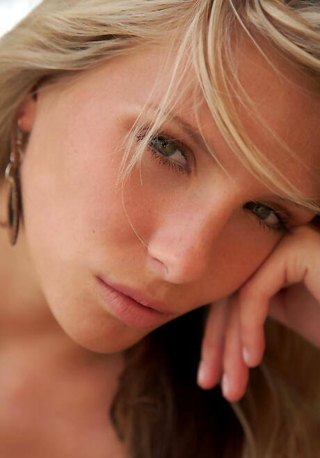 Met Art: Sexy ungdommelig gina a viser store hooters og skallet fitte utendørs