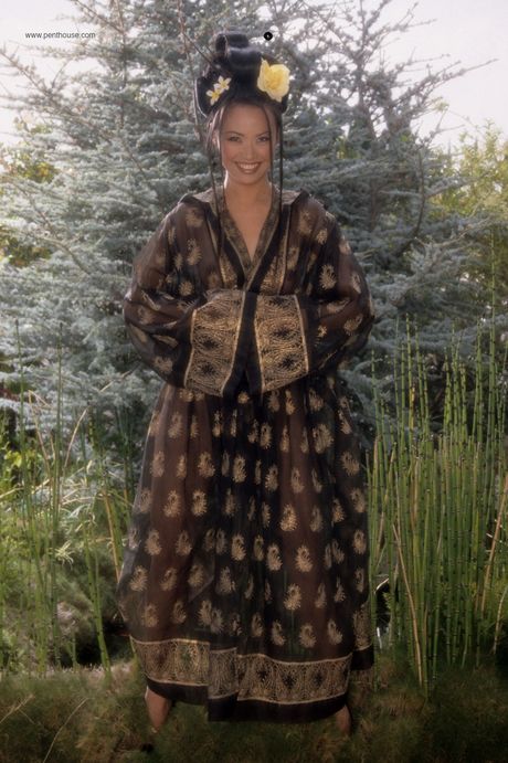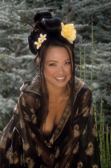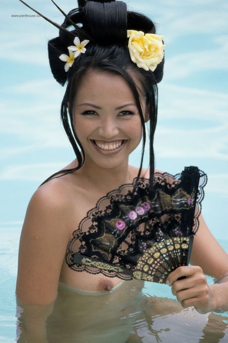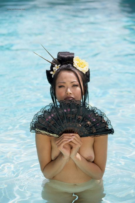 Penthouse Gold: Skinny asiatisk midtfold Caroline Koh avslører hennes perfekte kropp og poserer i bassenget