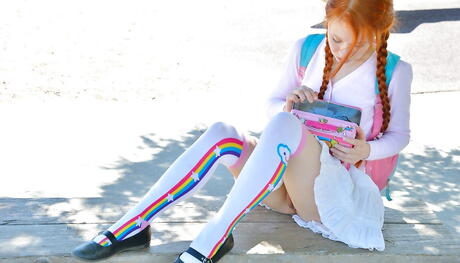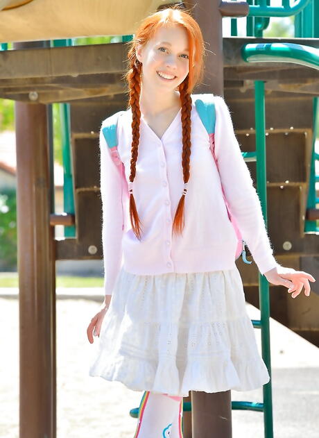 FTV Girls: Slank amerikansk rødhårete tenåring Dolly Little avslørende små pupper og kjærlig dildo utenfor