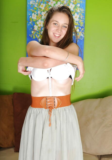 Karups Hometown Amateurs: Slim American Teen Layla Adams i undertøy viser rumpa og sprer bena