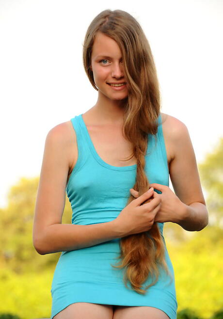 Met Art: Slank Young Milana K i sexy skjørt elsker litt varmt fotfetish utendørs