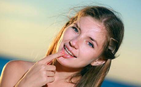 Met Art: Fantastisk mørkt hår tenåring vivian viser bittesmå pupper og sprer bena på stranden