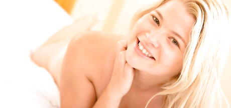Naughty Mag: Sylflignende amerikansk blond unge Mindy avslører rumpa og sprer bena