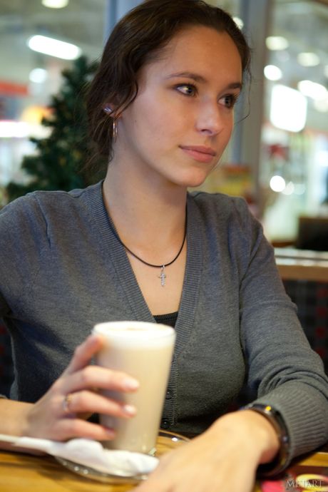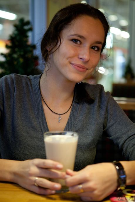 Met Art: Tynne tenåring Diana G strips bikini og avslører de store puppene utendørs