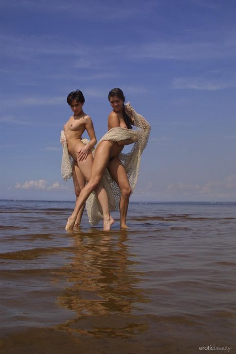 Erotic Beauty: Winsome Teen Girls Brandy & Bonnie blir naken på en sandstrand