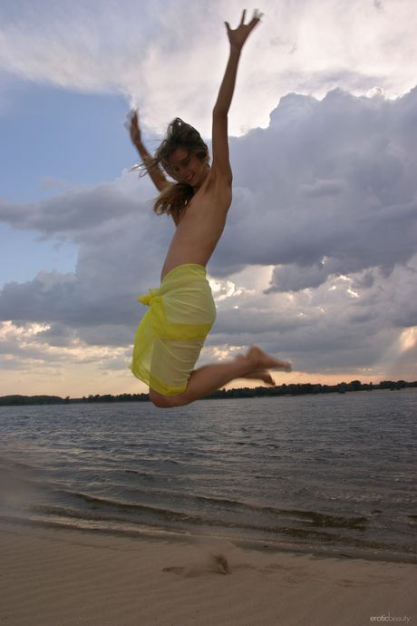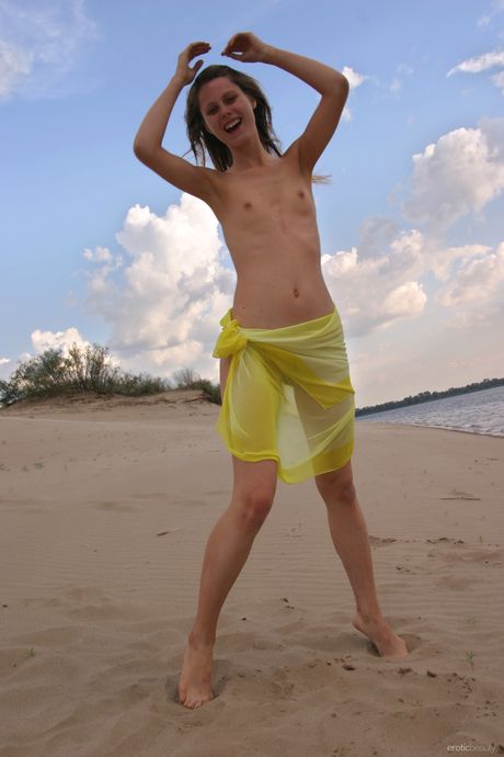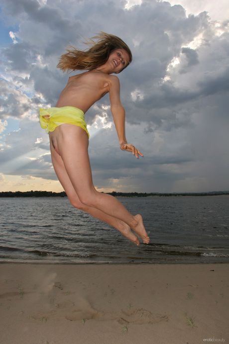 Erotic Beauty: Ung blond Kate F tar det hele på en sandstrand