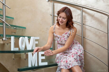 Met Art X: Unge rødhårete Mina blir helt naken før hun fingrer fitta