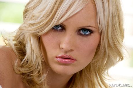 Penthouse Gold: Blonde Centerfold Hannah Hilton pokazuje swoje duże cycki i pociera jej cipkę