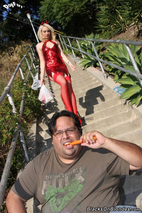 Dogfart Network: Blondynka Sara Monroe zostaje gangbangowana przez czarnych mężczyzn w stroju lateksowym