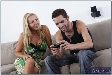 Naughty America: Blondynka Milf Lisa DeMarco pokazuje swoje duże piersi i rozkładając nogi