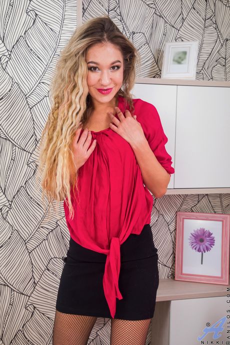 Anilos: Blondynka Milf Nikki pokazuje swoje piersi i rozkłada swoją cipkę w pończochy
