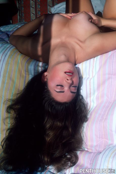 Penthouse Gold: Brunetka Amateur Lisa A pokazuje jej wielką piersią i pociera swoją owłosioną cipkę