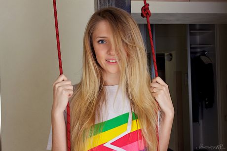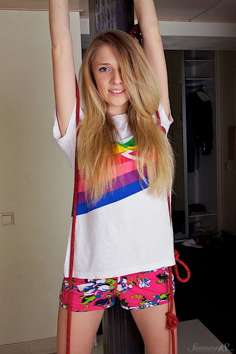 Stunning 18: Śliczna nastolatka Kat B staje się zupełnie naga bierze się na giganta podczas solo
