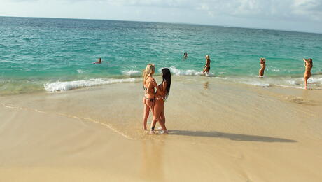 ALS Scan: Doskonałe pisklęta Brea Bennett i Sasha Rose w seksownym bikini liżąc sobie cipki w gorącym seksie lesbijek na plaży