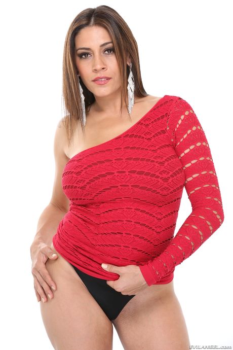 Evil Angel: Latina pornstar Raylene pokazuje swoje duże piersi i tyłek w czerwonej sukience