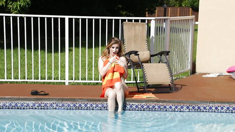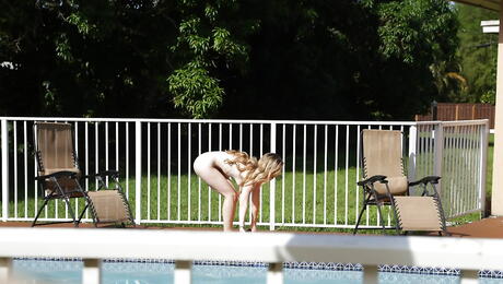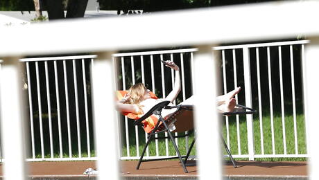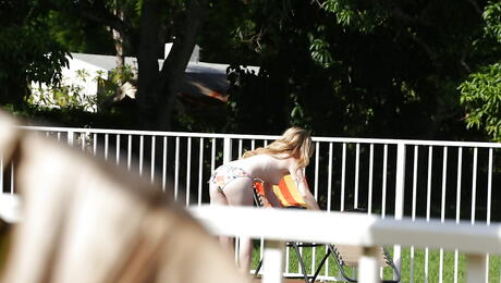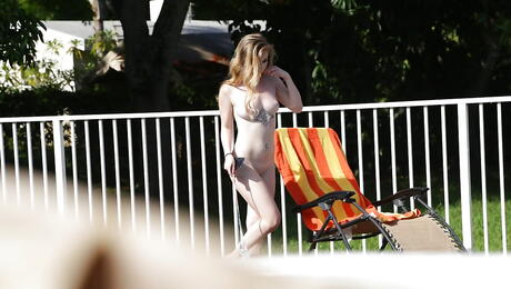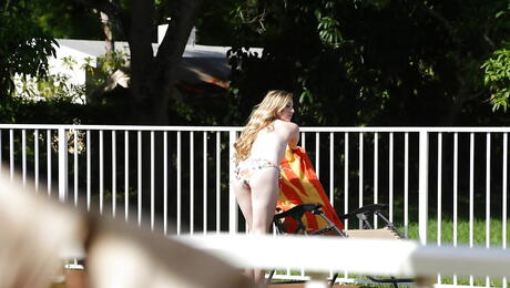 Pervs On Patrol: Peachy American Babe Daisy Chainz w seksownym bikini Denudes Big Knockers i rozkłada nogi w pobliżu basenu